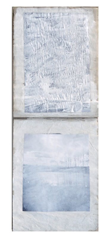 Book 1: Korean Pillow: (A Book of Diptychs): (pages 27 & 28): Mixed media on Hanji book. (23 3/4 x 9 in inches)